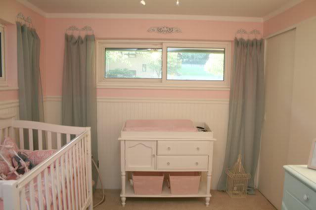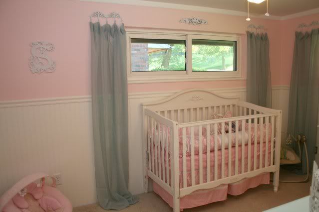 We decided to re-arrange the furniture because we weren't going to be able to fit a chair or an ottoman, which would not be fun for those late night feedings! I prefer the previous arrangement, but oh well! We also got some curtains hung and added a few details to the room. I am not 100% satisfied with the curtains, we could not find the right color ANYWHERE. So, we settled for these and they'll work just fine.
